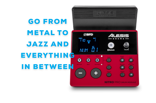 Модуль Nitro Pro оснащён простым интерфейсом с держателем для телефона, 60 треками для практики, секвенсором, метрономом и рекордером. USB/MIDI и классические MIDI-порты позволяют интегрировать установку в студию. Стереовыход и выход на наушники обеспечивают чистый мониторинг. Всё это делает Nitro Pro XL полноценным инструментом для творчества и обучения.