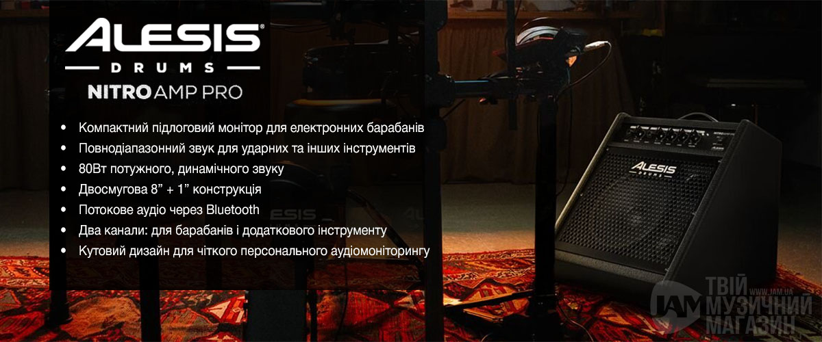 Разработанный для безупречной работы с электронными ударными установками различных брендов, Nitro Amp Pro предлагает простое подключение по принципу «plug-and-play» для лёгкой интеграции практически в любую систему. Для максимально унифицированного восприятия звука премиум-класса и максимального удобства игры выбирайте любую установку из линейки Alesis Nitro!