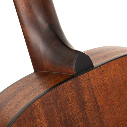 З’єднання грифа з корпусом типу dovetail (ластівчин хвіст) забезпечує максимально щільний контакт між деталями, покращуючи передачу вібрацій та надаючи звучанню більшої виразності й чіткості відгуку.