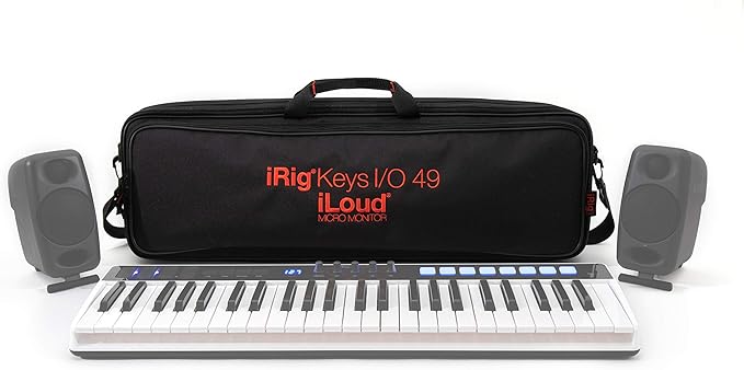Міцний чохол з 100% поліестеру з вишитим логотипом iRig Keys I/O та iLoud Micro Monitors, регульованими ременями та кишенею на блискавці для кабелів, блоків живлення та інших дрібних речей.