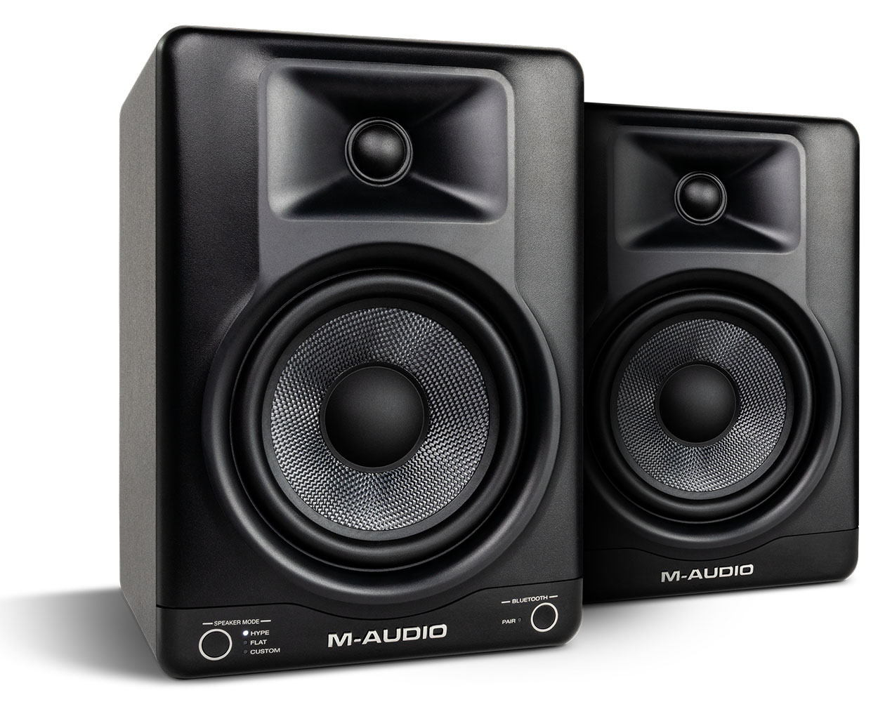 5-дюймові НЧ динаміки з промислового кевлару та ВЧ твітери з оптимізованими хвилеводами забезпечують чіткі високі частоти й потужний бас. Змінні режими референсного звучання FLAT, HYPE та CUSTOM, доступні з передньої панелі керування. Для ще глибшого налаштування звуку підключайтеся до застосунку M-Audio Studio Control App на смартфоні - він пропонує п’ятисмуговий еквалайзер і можливість створювати власні користувацькі пресети.