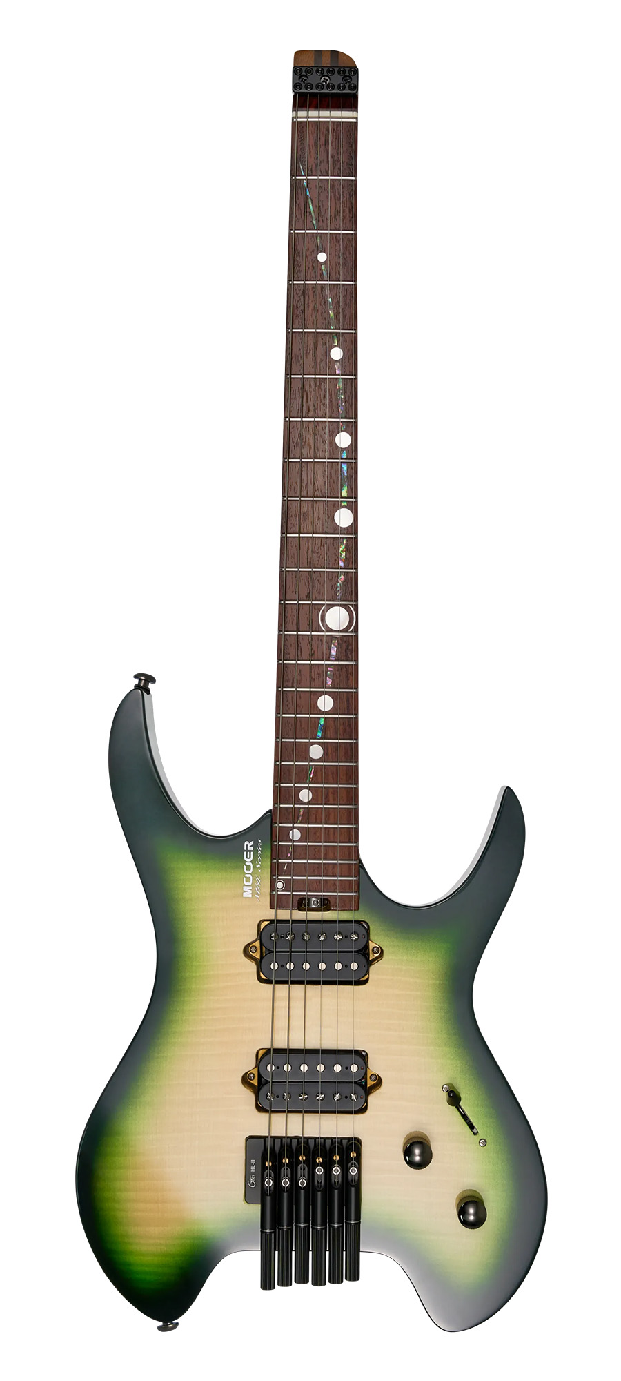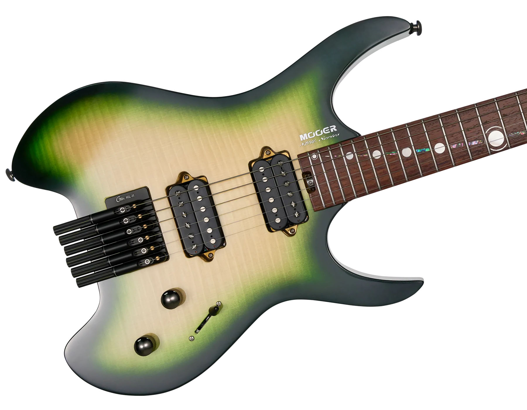 Безголова (headless) електрогітара Mooer MHL100 поєднує в собі сучасний дизайн і високу продуктивність. Вона створена для музикантів, які потребують виняткового тембру та максимальної зручності гри. Легкий корпус із тополі з топом із хвилястого клена вкритий глянцевим лаком і доступний у 5 вражаючих кольорах - це сміливий візуальний стиль із сучасним акцентом.