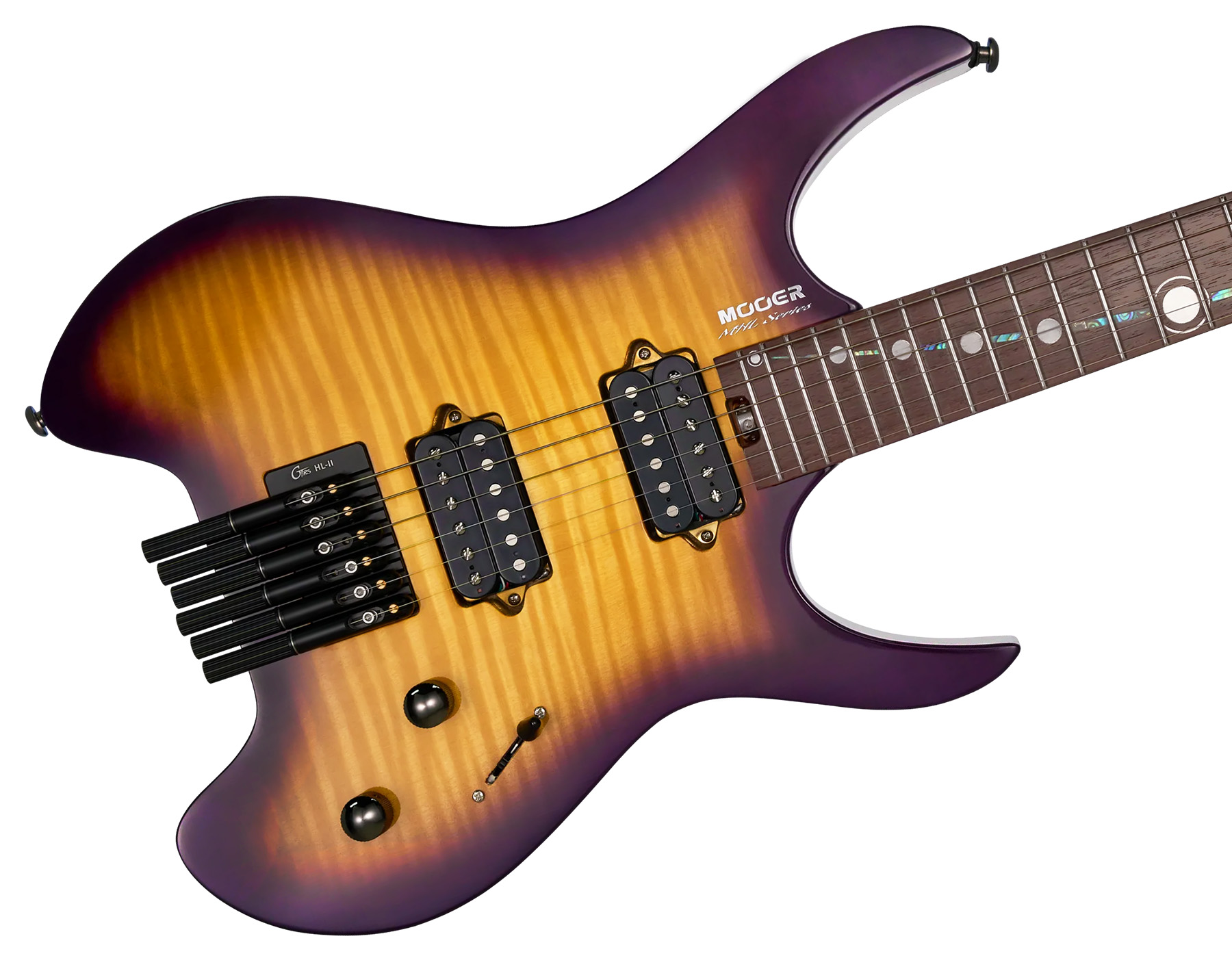 Безголова (headless) електрогітара Mooer MHL100 поєднує в собі сучасний дизайн і високу продуктивність. Вона створена для музикантів, які потребують виняткового тембру та максимальної зручності гри. Легкий корпус із тополі з топом із хвилястого клена вкритий глянцевим лаком і доступний у 5 вражаючих кольорах - це сміливий візуальний стиль із сучасним акцентом.
