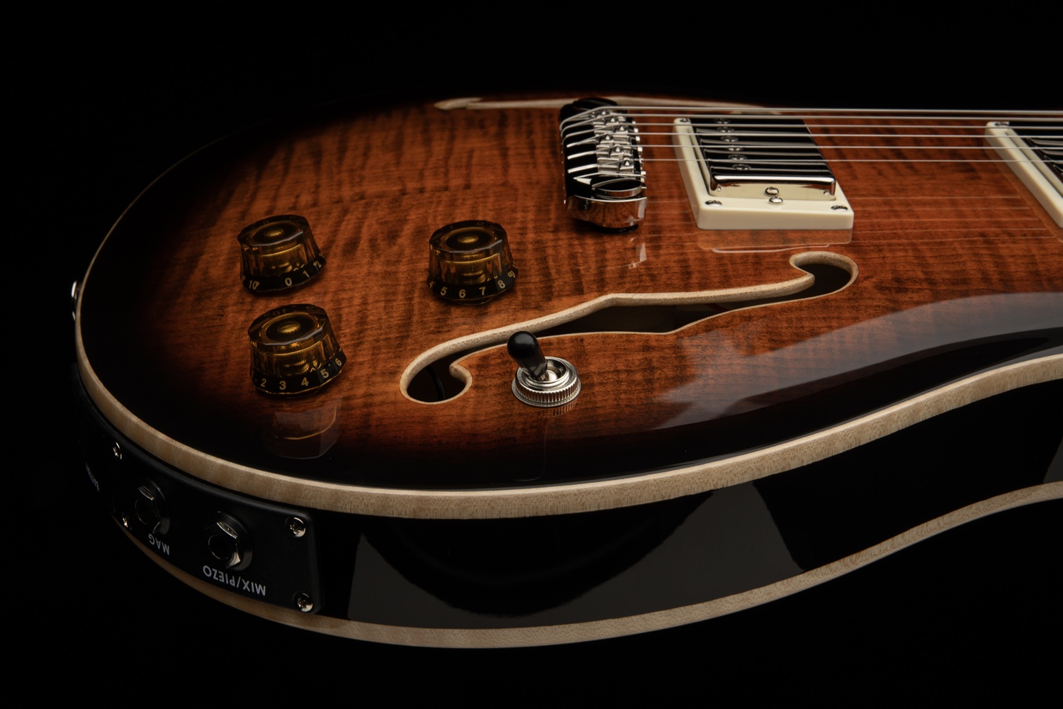 надає музикантам універсальність, дозволяючи їм використовувати як акустичні, так і електрогітарні тембри в одному інструменті. Інструмент оснащений двома окремими регуляторами гучності (магнітний та п'єзоелектричний) та вихідними роз'ємами (мікс/п'єзоелектричний та магнітний). Можна підключитися до роз'єму «Mix/Piezo» і, використовуючи окремі регулятори гучності, змішувати звукознімач 58/15 LT «S» з акустичним п'єзвукознімачем. Крім того, можна підключатися до роз'ємів незалежно, щоб підключати магнітні звукознімачі до підсилювача, а п'єзо через акустичний підсилювач або DI до мікшерної деки. При використанні магнітного вихідного роз'єму в ізольованому режимі п'єзоелектрична батарея повністю відключається, що забезпечує стійкість до відмов (у цьому випадку магнітні звукознімачі продовжують працювати, навіть якщо п'єзоелектрична батарея розрядилася).
